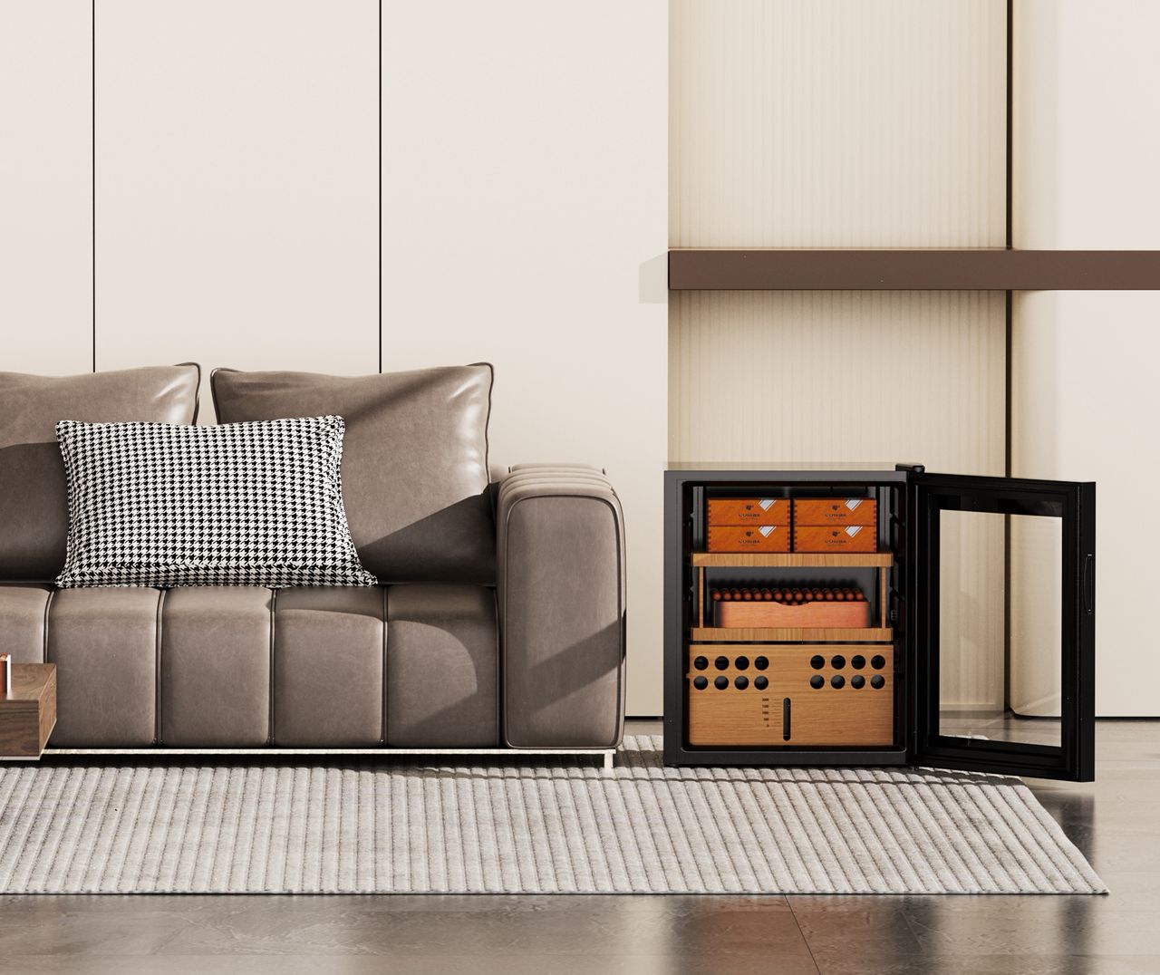 Φέρει 2 ράφια από ισπανικό κέδρο και 1 ξύλινο δοχείο νερού με ένδειξη στάθμης